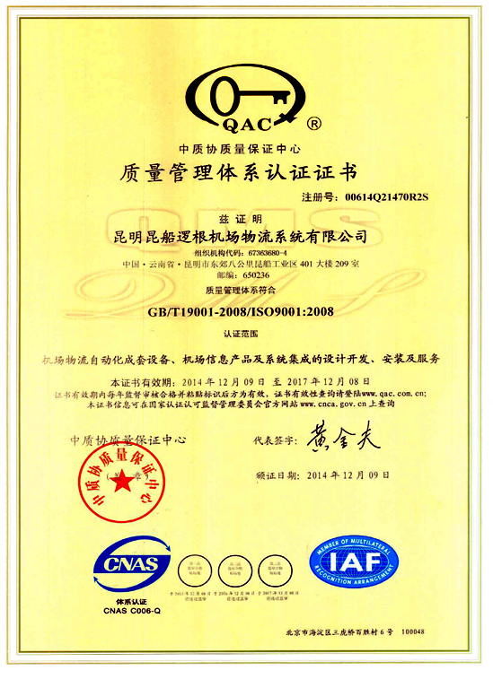 質(zhì)量體系認證證書